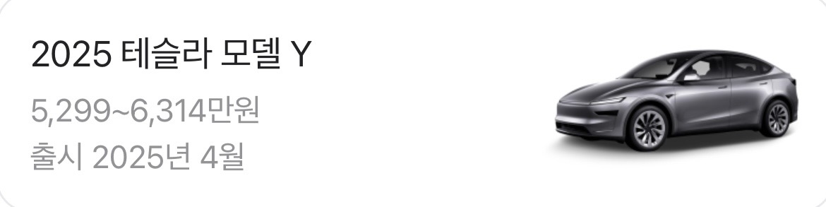실내는 최대 5인승이며, 옵션으로 7인승 구성도 가능합니다. 2열과 트렁크 공간이 매우 넓어 가족 단위 사용자나 캠핑 등 레저 활동을 즐기는 사람들에게 최적화한 차량입니다. 가격은 모델 3 대비 다소 높은 약 6,200만 원부터 시작하지만, 차량 크기와 활용성, 주행거리 등을 고려하면 충분한 가치가 있습니다. 모델 Y는 전기 SUV의 기준이 되어가고 있으며 실용성과 성능을 모두 원하는 소비자들에게 강력히 추천할 수 있는 모델입니다.